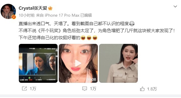 张天爱在回应中提到,看到直播截图时自己都有些认不出,还调侃角色的“后劲太足”。她的工作室也同步强调了健康优先的理念,这与她近年来告别极端节食、追求自然状态的转变相呼应。新电影的导演也在个人社交圈发文,用轻松的语气证实了她为角色增肥的事实,侧面肯定了她对演艺事业的投入。